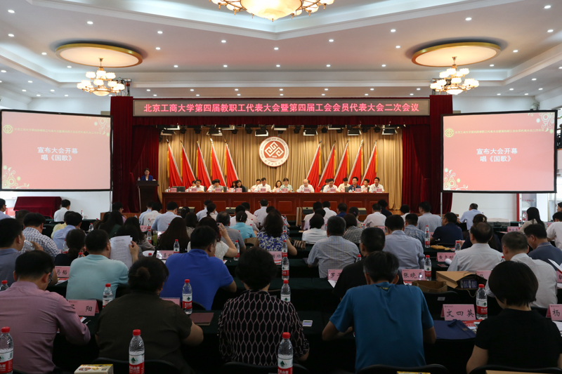 上午10点,在庄严的国歌声中,第四届“双代会”第二次会议在阜成路校区开幕。两委委员在主席台就座。学校党委副书记董竹娟主持会议。11个代表组的