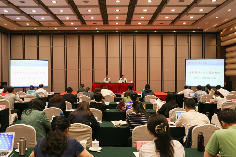 为提升学校科研管理工作水平、激发各单位和科研人员工作热情、总结成绩与查找不足,为学校下一步科研工作的开展打下坚实基础,学校于6月2日至3日组织召开了2017年科研管理干部培训会暨平台工作会。副校长郑文红出席会议,相关职能部门负责人、主管科研副院长、省部级科研平台和校级科研平台负责人、全体系主任(正)、科研教秘及科学技术处相关老师参加会议。会议由科学技术处处长张晓堂主持。