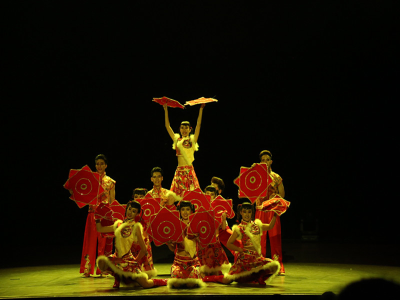 传统舞《欢庆》参赛学生:宋楠 李泽妤 王 梓 周冰澈 陈晨 王雨菲 王晶依 仁庆卓玛 刘尧风 周千朔