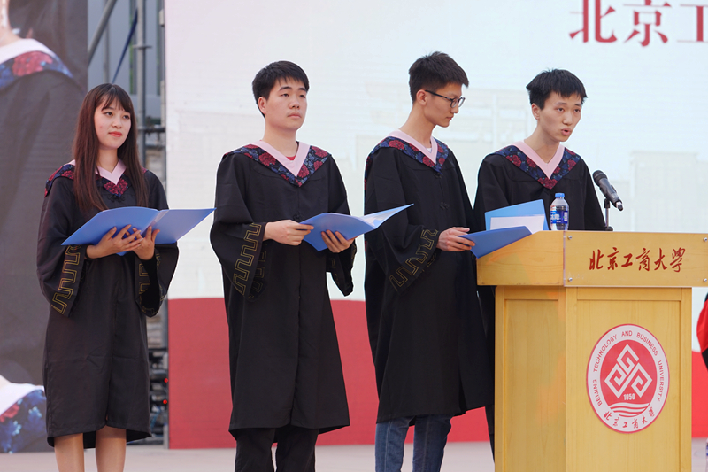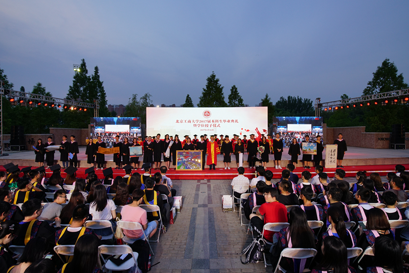 学位授予仪式庄严而隆重。穿着毕业服的学子们从容地走到台前,迎接这一难忘的时刻。他们带回了一份沉甸甸的证书,送走了四年勤奋苦读的岁月;这些变化不仅仅是学士帽上随风飘扬的流苏,还有他们不断提升的人生境界、不断充实的内心以及即将实现的理想。在北工商的日子已经过去,希望他们乘着梦想的翅膀,飞得更高更远。