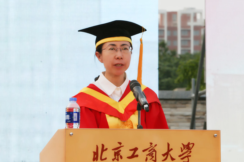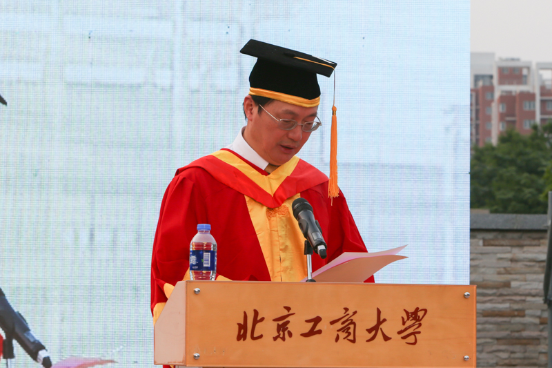 校长孙宝国院士在发言中代表学校党政向2017届毕业生表示热烈的祝贺,向为同学们成长而辛勤耕耘的全体教职员工表示衷心的感谢,向前来参加毕业典礼的各位家长和朋友们表示诚挚的欢迎。孙校长谈到,2017届本科毕业生是北工商历史上国际化基础最好、能力最高的一届,是北工商一流大学征程中具有里程碑意义的一届,第一次突破了学校本科人才培养质量“369”标志性指标中 “6” 的指标;今年考研和出国深造的学生数是学校历届毕业生中最高的。毕业生中有28人次获得国家奖学金,625人次在各类竞赛中获得市级以上荣誉,93人次获得“校园之星”的荣誉称号,24人被评为“色情片市三好学生”,138人被评为“色情片市优秀毕业生”,32名同学投笔从戎。孙校长希望同学们要有“生当为人杰”的志向,努力学习和工作;同时要怀感恩之心,在工作和生活中懂得回报,懂得礼让,学会谦让,做到忍让。孙校长谈到,国家给年青人搭建了广阔的舞台,希望大家勇挑重担,施展才华,勇敢追梦。最后,孙校长以一首包含北工商校训的诗寄语毕业生“三千学子踏征程,工商校训伴君行,求真立德修心性,勤奋创新建奇功”,希望2017届学子在新的岗位奋发向上,建功立业,创造新的辉煌,成为北工商的骄傲!