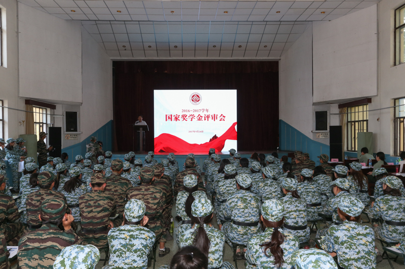 9月24日下午,我校2016-2017学年本科生国家奖学金评审会在延庆康庄611学生军训基地举行。学校党委副书记张德玉、学生处处长吕素香、校团委书记王海伟、部分学院党委书记、副书记出席并参与评审。144名正在军训基地参训的2017级新生代表观摩并作为学生评委参与评审。