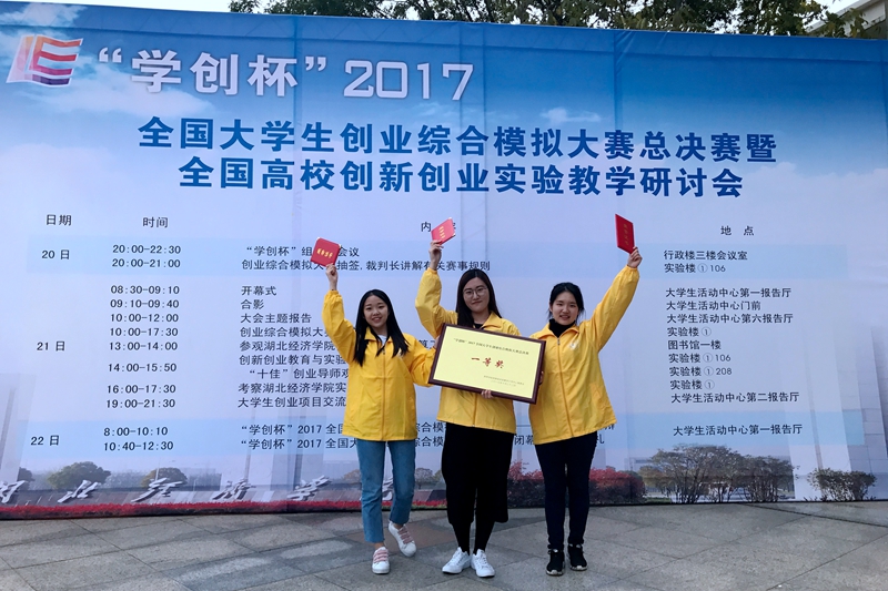 10月20日至22日,“学创杯”2017大学生创业综合模拟大赛全国总决赛暨全国高校创新创业实践教学研讨会在湖北武汉举行。我校由经济学院文科实践中心曹刚、朱建方老师指导的代表队,以优异的成绩荣获全国总决赛一等奖。