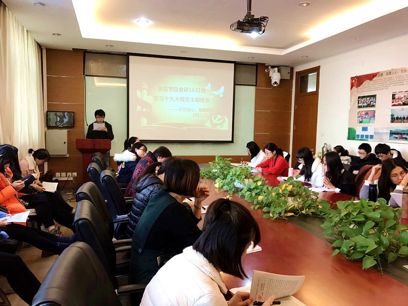 食研1631班全体同学在前期认真研读十九大报告的基础上,从习总书记十九大报告出发,结合自身实际,进行了分组讨论。在谈到过去五年的工作和历史性变革时,班长谢久莹同学从经济、民生、教育等方面就自己身边发生的巨大变化谈起,落脚到思想上进一步向党组织靠拢,多做实事;学习上更加努力拼搏,尽力去克服困难,不能有一丝一毫懈怠;在社会工作中,会进一步树立服务意识,为全班同学服务;生活中继续发扬优良作风,努力提升自己。刘飞同学就“贯彻新发展理念,建设现代化经济体系”发表了自己的看法:“只有坚持科技创新是第一动力,有了科技创新才能提高质量效率,尤其在报告里讲到国家创新体系,我们是国家未来创新的主力军,这也要求我们在日常学习和科研过程中保持一颗探索的心,多观察,多思考。”