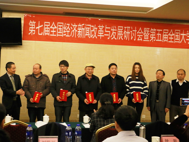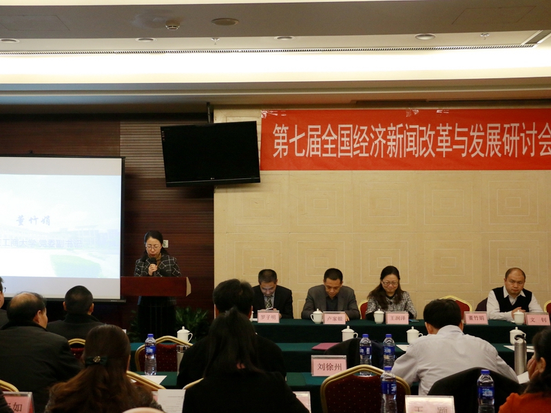 11月18日,艺术与传媒学院举办第七届全国经济新闻改革与发展研讨会暨第五届全国大学生经济新闻作品大赛颁奖会,来自国内外20余所高校、10余家新闻媒体的专家学者参加研讨。我校党委副书记董竹娟出席会议并讲话,艺术与传媒学院院长罗子明、党委书记林刚、副院长宋煜、党委副书记刘晶参加会议。教务处副处长、艺术与传媒学院经济新闻研究中心主任王擎主持开幕式。