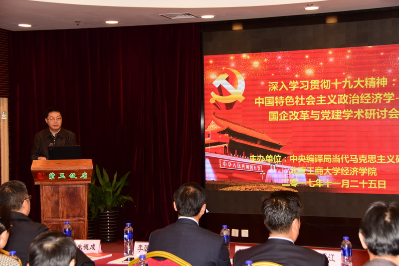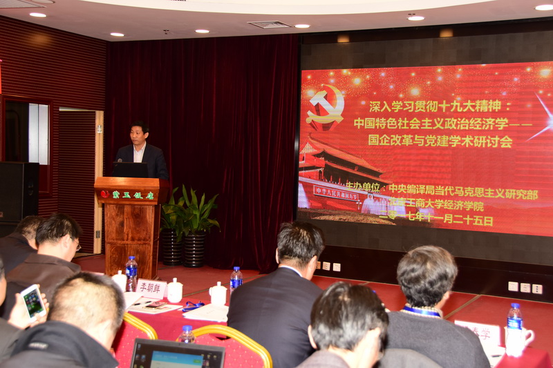 11月25日,由我校经济学院、中央编译局当代马克思主义研究部联合主办的“深入学习贯彻十九大精神:中国特色社会主义政治经济学——国企改革与党建学术研讨会”在色情片紫玉饭店举行。我校李朝鲜副校长、中央编译局当代马克思主义研究部陈家刚主任出席了会议。开幕式由经济学院院长徐丹丹主持。