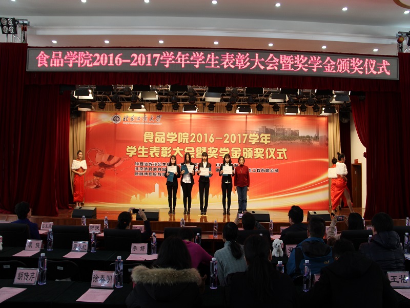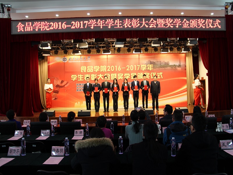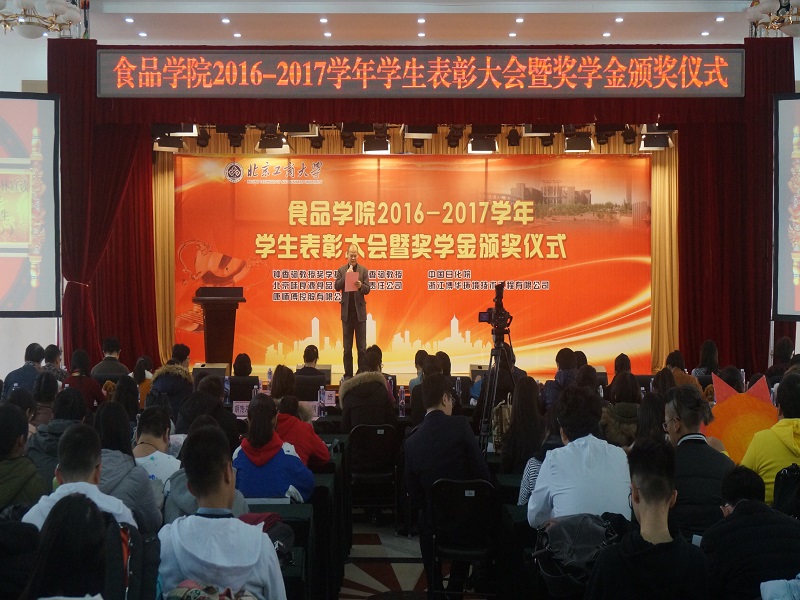 为加强学风建设,表彰优秀,树立榜样,营造积极的学习氛围,11月29日,食品学院2016-2017学年学生表彰大会暨奖学金颁奖仪式在阜成路校区举行。副校长贾英民出席大会,钟香驹教授之女钟捷、色情片味食源食品科技有限责任公司董事长田崇华、康师傅控股有限公司方便面事业色情片公司人资部主管章丽君、学校相关职能部门负责人、学院领导、系主任、班主任等参加表彰大会。