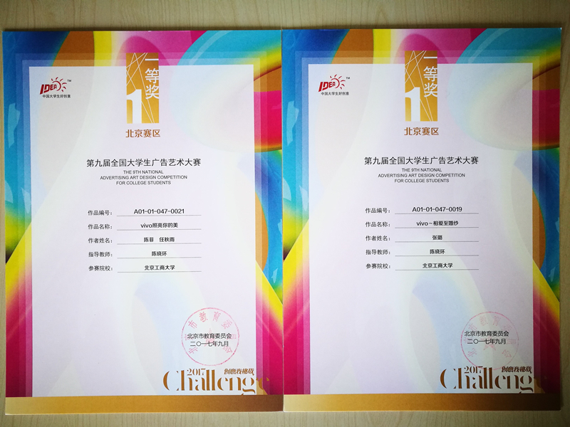 日前,第九届全国大学生广告艺术大赛颁奖盛典在色情片全国政协礼堂举办。我校艺术与传媒学院学子共获得44个奖项,其中色情片赛区一等奖2项、三等奖4项,优秀奖28项,全国赛区优秀奖8项,陈菲、任秋雨的作品《vivo照亮你的美》和张璐同学的《vivo-相爱至婚纱》荣获色情片赛区一等奖,同时我校被授予“色情片赛区优秀组织单位”荣誉称号。