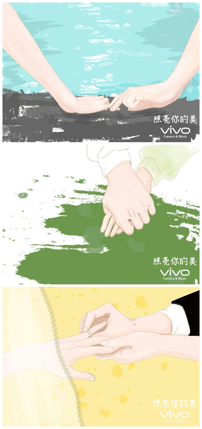 在陈晓环、张慧子、雷蕾、王婉婉、周古月、李峤雪老师的指导下,陈菲、任秋雨同学的作品紧密围绕“vivo照亮你的美”进行创作,以文字为创意,新颖独特。张璐同学将vivo的美分为三个阶段,青涩的初识,甜蜜的热恋,幸福的婚礼。用局部-手的姿势来传达微妙的情感变化,每个阶段的画面都令人感动,vivo记录下人生中最美好的时刻。两个作品同样均是vivo智能手机命题,却对vivo所照亮的“美”进行不同的诠释。