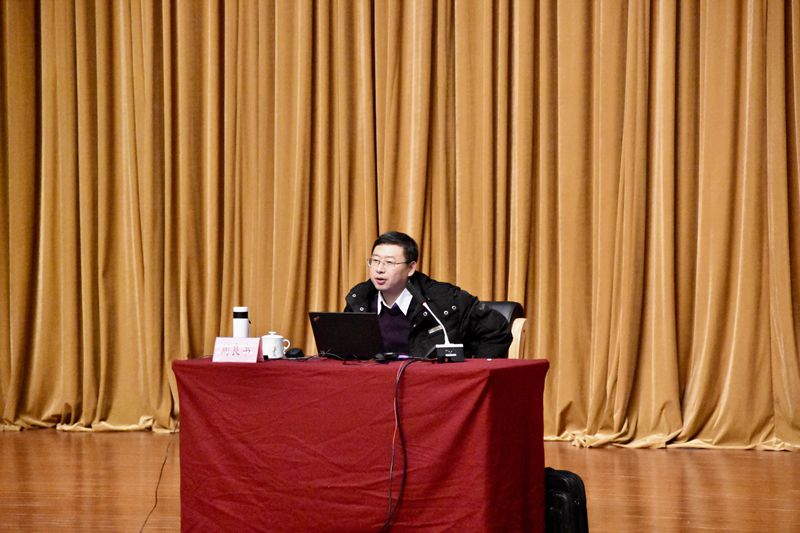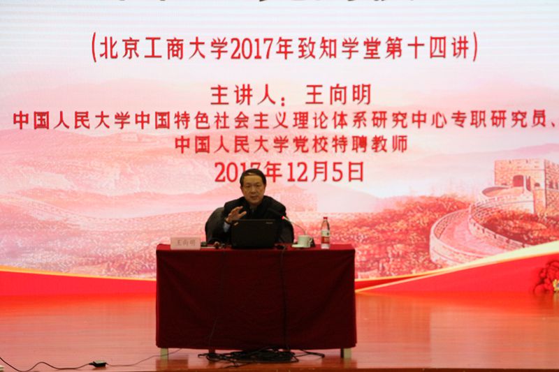12月5日晚,中国人民大学中国特色社会主义理论体系研究中心专职研究员、中国人民大学党校特聘教师王向明以“正确认识和自觉维护习近平在全党的核心地位”为主题,为同学们解读党的十九大精神。他结合我国历史,从新时代、新思想、新目标、新征程四个角度,回顾了我国从站起来到富起来的过程,展望了未来强起来的前景。他认为在新时代的今天,我们应以新的角度去探索新的目标与任务,作为新时代的青年同学们更应肩负起历史重任,努力学习,矢志报国。