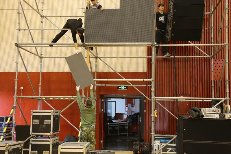 彩排前,晚会工作组对晚会整体进行了一次推演,仔细审查了各个环节:演员们精心装扮,身着艳丽服装,翘首以待;主持人精神抖擞,熟记台词,充满自信;道具组认真核对各个节目道具及细节,确保做到动作迅速、准确到位;灯光、音响、话筒等设备人员积极沟通,沉稳应对,力求万无一失,呈现完美舞台效果。
