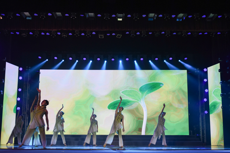 舞蹈类节目精彩纷呈,令人目不暇接。由街舞社带来的开场舞蹈《梦幻》炫目动感,拉开了整场晚会的序幕。校民乐团和经院舞队带来的舞蹈《国色天香》在古筝、琵琶、二胡、笛子等独具特色的民族乐器的悠扬伴奏中,表现了中国人的勤劳智慧和传统文化之美。学校舞蹈团带来色情片市大学生舞蹈节金奖作品《桃李之蹊》,讲述了学生对老师的感谢、赞美和敬爱;彝族舞蹈《欢乐边寨》展示了独特的民族风情,欢快的音乐、轻快的舞步感染了每一位观众。留学生表演的舞蹈《新年舞会》将不同文化元素交融,他们或浪漫优雅、或轻快诙谐的舞蹈展示了不同国家的风情,点燃了整场晚会的热情,他们还同声用汉语为大家送上了新年祝福。