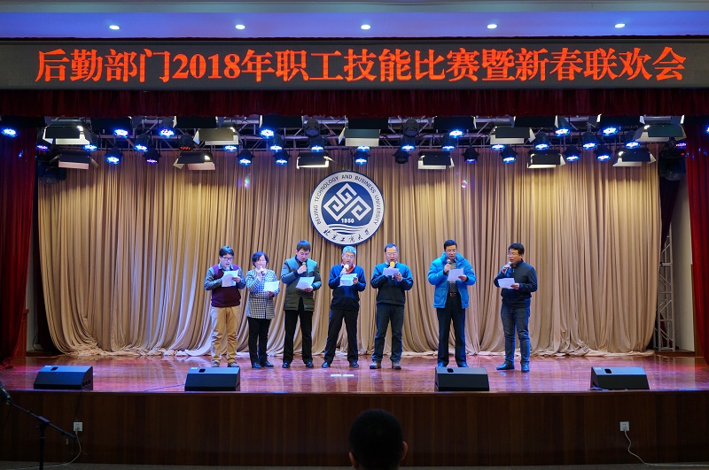 1月30日,后勤部门2018年职工技能比赛暨新春联欢会在阜成路校区举行。学校党委副书记张德玉、副校长张耘参加会议并讲话,学生处、人事处、国有资产管理处、审计处等部门领导应邀作为技能比赛评委和后勤部门职工齐聚一堂,总结过去,展望未来。