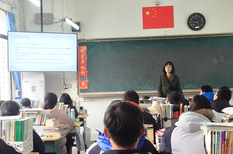 这所中学的学生大多来自农村,家境贫寒,求学之路的艰难往往是城市学生难以想象的。在宣讲中,我对十九大报告的主要内容进行了介绍,与学弟学妹们们共同学习了刚刚发布的2018年中央一号文件中关于乡村振兴战略及农村精准脱贫等方面的政策,并重点为学弟学妹们梳理了高校的学生资助政策。我也来自一个农民家庭,从小家里经济条件就非常不好。我清晰记得读高中时,由于不了解大学的“绿色通道”等资助政策,在日常繁重的学业之余,常常为生活费以及上大学之后学费的来源担忧,更害怕会因为交不起学费而不能圆自己的大学梦。而今天,我可以自信地告诉奋战在考学路上的高三学子们,放下思想包袱,搁下心中石头,安心学习,不必再为未来的学费而担忧。