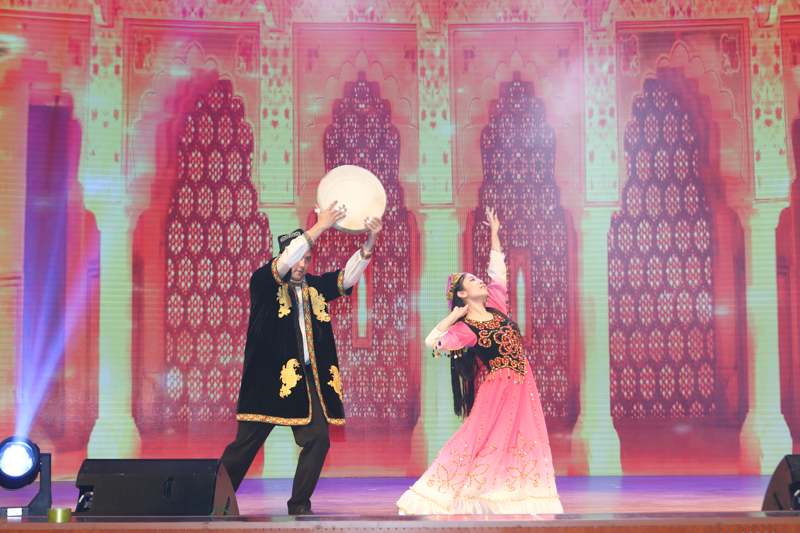 “再续校园情”篇章中,材机学院毕业生陈宏健等人用吉他弹唱的北工商版《纸短情长》带领大家一起重温了在学校的点滴生活,歌曲串烧的同学们用扣人心弦的歌声表达了对母校的感激与留念,以及对友情、爱情和梦想的坚守。由中央财经大学研究生李尚和我校研究生舞蹈协会的同学共同演绎的歌伴舞《bang bangbang》将舞台气氛推向高潮。优美灵动的新疆舞表演也让在场观众赞叹不已。