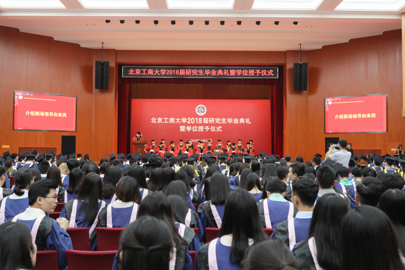 师恩难忘,语短情长;骊歌声起,青春未央。6月21日,学校在阜成路校区东区礼堂举行2018届研究生毕业典礼暨学位授予仪式。校领导孙宝国、谢志华、李朝鲜、郑文红、贾英民、方德英出席活动。毕业典礼由党委副书记张德玉主持。900余名研究生在校领导、导师代表、家长代表、同学及亲友们的共同见证下,圆满完成学业,昂首阔步迈向人生新征程。