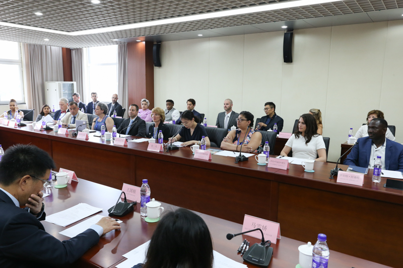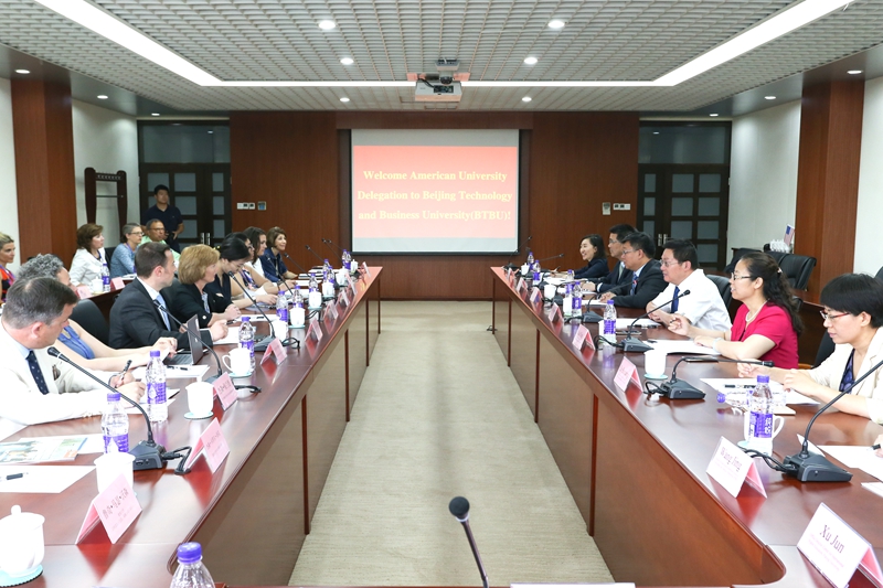 学校国际交流与合作处处长刘影、教务处处长左敏、学生处处长吕素香、商学院院长王国顺、食品学院食品系主任王静分别向代表团成员介绍了我校国际化发展、本科教学改革、学生管理、商学院建设发展以及食品营养与人类健康高精尖创新中心建设情况和引智项目。