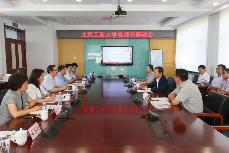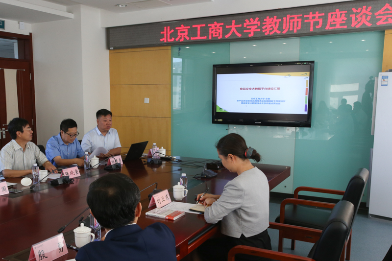 座谈会上,孙宝国校长代表学校对殷勇副市长百忙之中来校看望教师表达了衷心的感谢。他介绍了学校的办学历史、办学条件和近年来学校在学科建设、教学科研、师资队伍、国际化以及人才培养等方面取得的成绩,着重介绍了学校根据学科和专业特色,明确建设以商科、食品和轻工为特色的高水平研究型大学的办学定位,阐述了学校建设“一流学科、一流本科教育”的重要举措和充分发挥特色专业优势主动服务首都经济发展和国家战略的具体情况、取得的成绩以及学校未来几年的发展目标与前景。