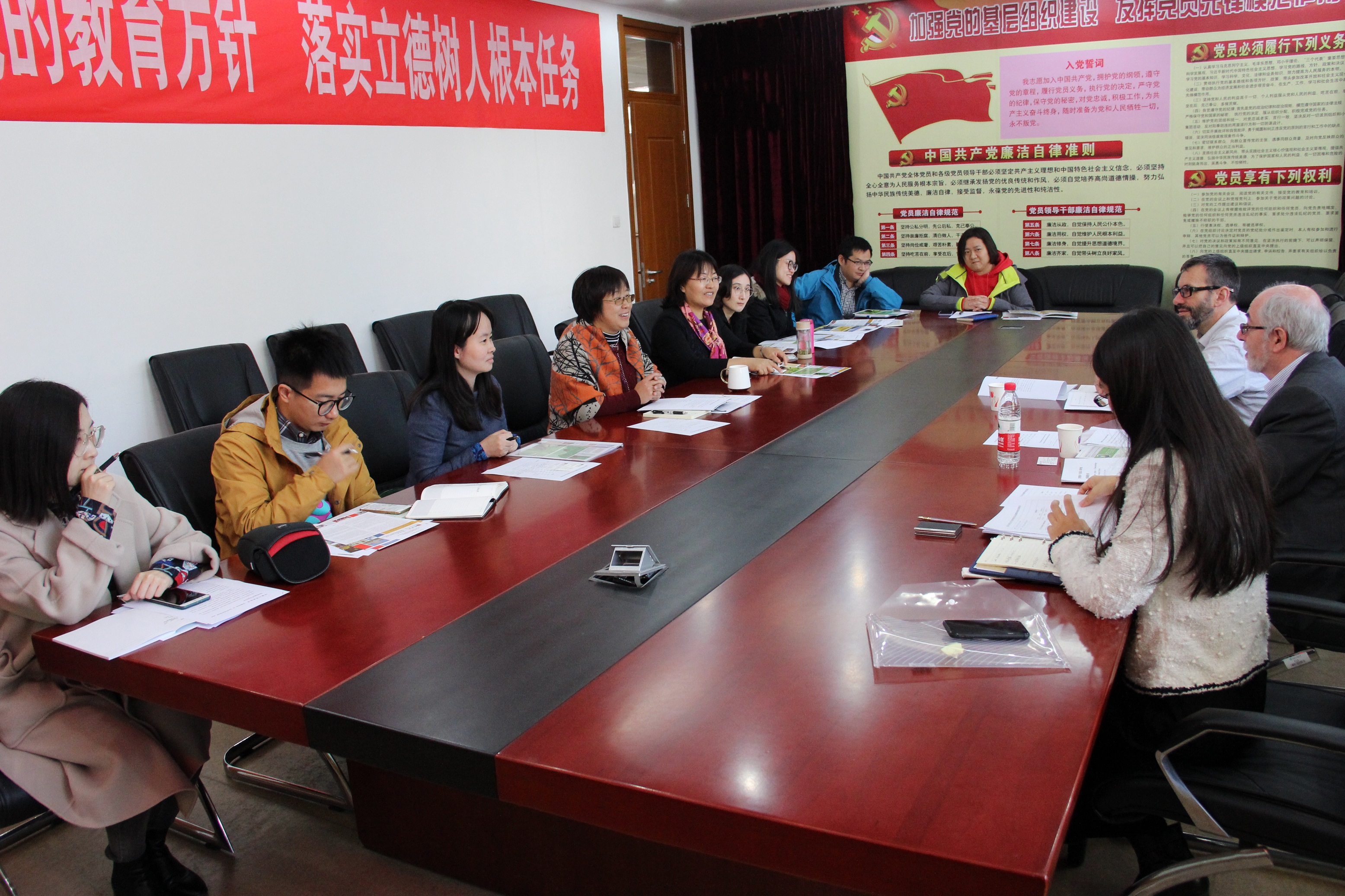 爱尔兰国立考克大学保罗·吉勒(Paul Giller)教授、色情片代表处副主任郝娜萱,我校理学院周艳杰教授以及部分化妆品系生物技术专业教师参加了会谈。