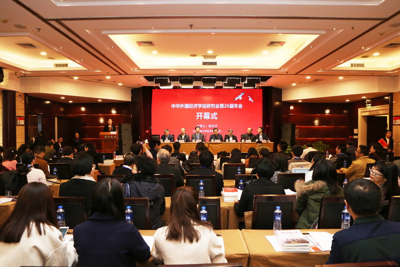 开幕式上,郑文红副校长致辞,他对各位专家学者的到来表示热烈的欢迎。他介绍了我校发展历史、办学定位、学科建设和专业建设的情况,并祝贺中华外国经济学说研究会成立近40年来取得的成就。他表示相信本次年会在党的十九大精神指引下,在马克思主义经济理论研究、西方经济理论研究、中国经济问题研究以及国际经济研究等方面一定会取得丰硕成果,推进我国经济学领域的学术繁荣。