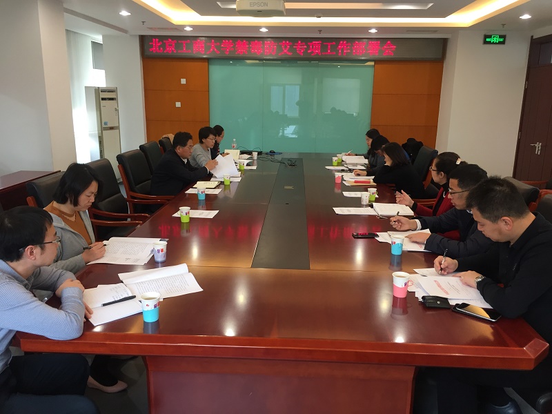 11月20日,学校在阜成路校区召开了禁毒防艾专项工作部署会,党委副书记张德玉出席会议,宣传部、教务处、学生处、研究生院、国际交流与合作处、后勤基建处、保卫处、团委、校医院等部门负责人、相关科室成员参会。会议由学生处处长吕素香主持。