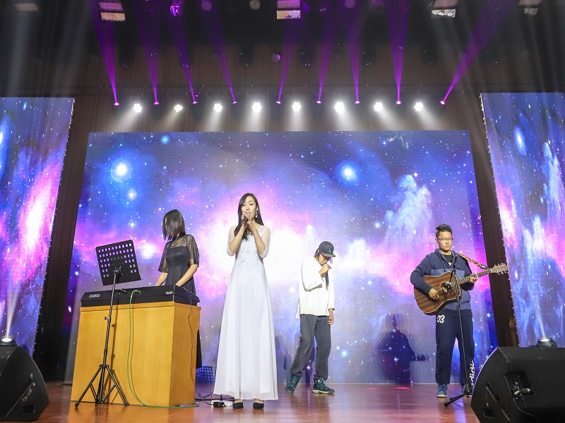 比赛分为歌曲组、配音组、团体组和其他组四个组别。各组依次进行表演,由评委进行打分。韩江鹤等五位同学带来的《水星记》让大家产生了对银河的无限畅想,刘兆丰的《胡桃夹子》让同学们仿佛置身于童话王国,吴汇泽演唱的艺术歌剧《夜莺》使同学们聆听美妙歌声的同时,欣赏到了小提琴的悠扬,久久沉醉其中。配音环节中,张典把《剩者为王》中父亲对于女儿朴素而又深沉的爱生动的展现在同学们面前;纪璇《葫芦娃》《小猪佩奇》的配音可爱又活泼,让童心未泯的我们又过了一把动画瘾。