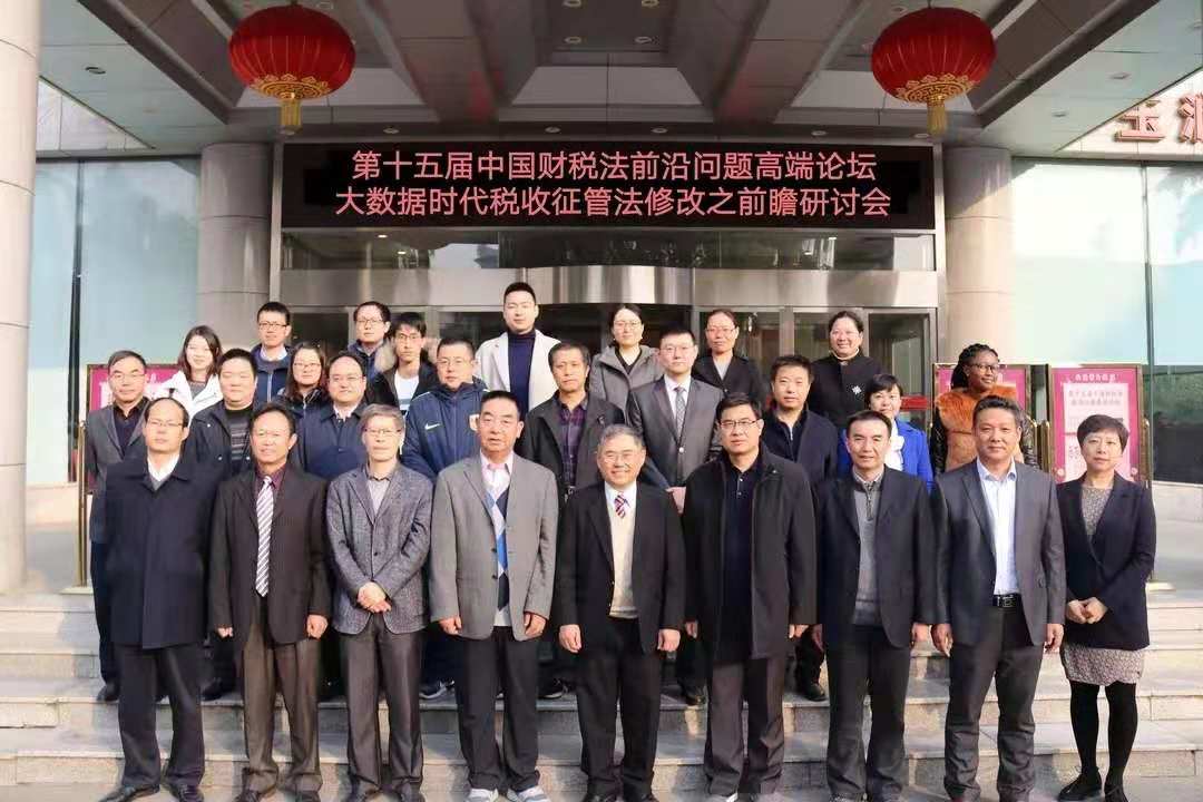 12月1日,由中国法学会财税法学研究会、新时代财税法治研究院主办,我校法学院承办的第十五届中国财税法前沿高端论坛举行。本届论坛主题为“大数据时代税收征管法修改之前瞻”,来自海峡两岸的100余位理论界与实务界的领导和专家学者应邀出席会议,法学院部分教师、相关工作人员及研究生参加了此次会议。