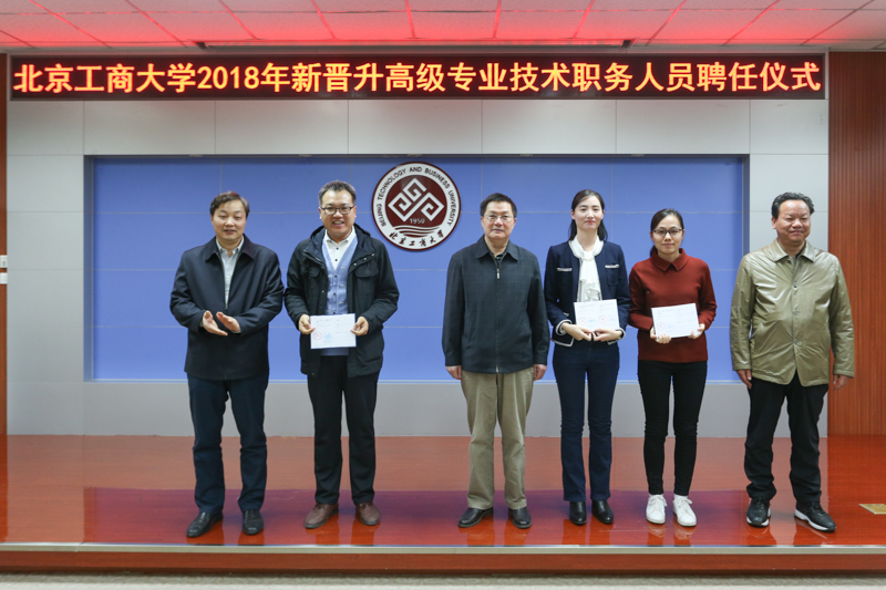 12月4日,学校在阜成路校区举行2018年新晋升高级专业技术职务人员聘任仪式。校长孙宝国院士,副校长李朝鲜、郑文红、方德英出席聘任仪式。各教学单位党政负责人、相关职能部门及教辅单位负责人,以及2018年新晋升高级专业技术职务人员参加聘任仪式。仪式由校党委副书记董竹娟主持。