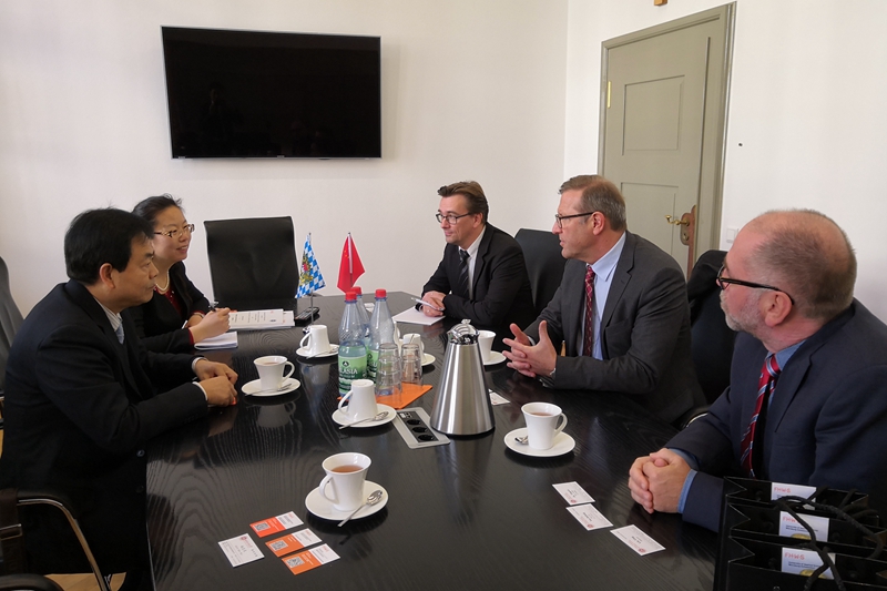 在德国维尔茨堡-施韦因富特应用技术大学,贾英民副校长与罗伯科普夫(Dr. Roßkopf)副校长、经济与商业管理学部国际关系主任雷纳·韦纳(Rainer Wehner)、国际办公室副主任托马斯·斯密特(Thomas Schmitt)、经济与商业管理学部国际管理主任曼菲尔德·凯瑟(Manfred Kiesel)进行会谈并代表学校签署校际合作协议和交换生合作协议。双方希望能够通过两校已搭建起的中小企业学术研究项目为平台,在开展学生交流的同时,进一步在学术领域开展合作。