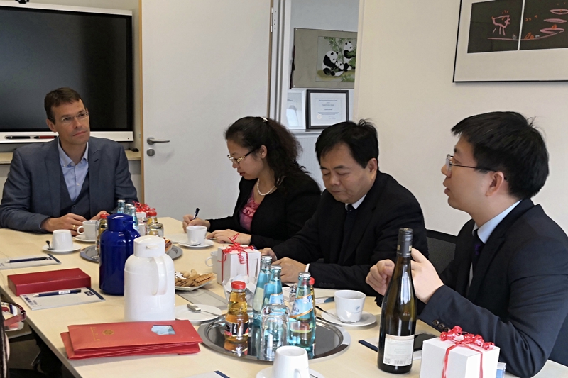 在德国马克斯普朗克化学研究所,贾英民副校长与多相化学部主任乌尔里希·波希尔(Ulrich Poschl)进行了会谈。贾英民副校长详细了解了马克斯普朗克化学研究所的发展情况、研究特色和相关项目进展,并介绍了我校的基本情况、专业设置、学科特色以及学校近年来的发展战略和未来方向。双方对开展相关专业领域的教师和科研人员的交流互访进行了深入交流并达成合作共识。