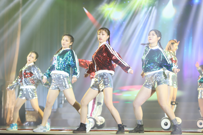 因为热爱,所以选择留在学校、建设学校,诗朗诵《我们的四十年》,由分别在1978、1988、1998、2008和2018年考入学校的5位师生代表,深情讲述了自己在校学习工作的经历和学校40年来取得的喜人成绩,一张张定格历史的图片,一句句真挚的话语将晚会推向高潮,在场师生无不为之感动;由学校合唱团带来歌曲联唱《流金岁月》,“春天的故事”“在希望的田野上”“东方之珠”“我的未来不是梦”等时代金曲带领人们重温了40年的光辉岁月;由Aloha天使团带来的《冰火奇缘》动感亮丽,学生们身着自己设计的服饰款款走入观众席中,自信的笑容展现了他们青春的朝气。