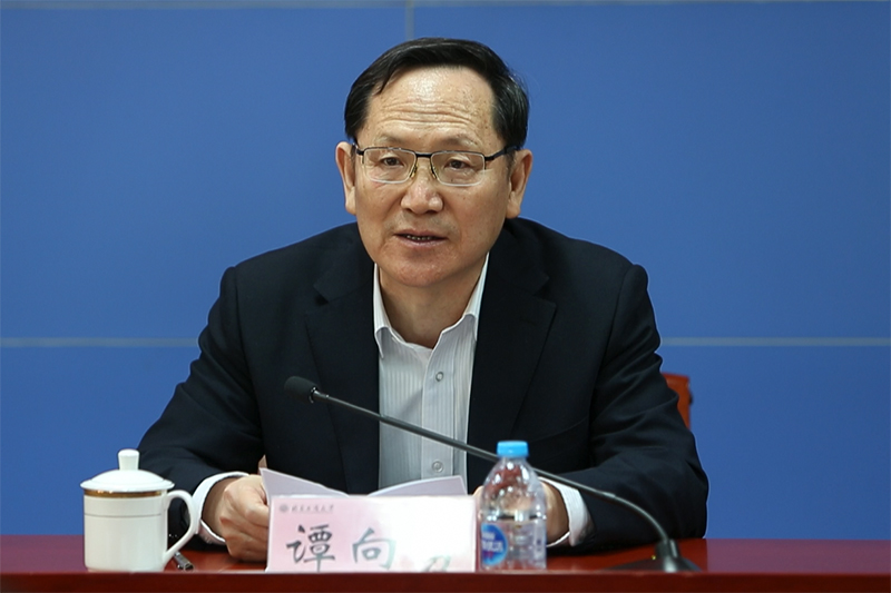 谭向勇在发言中表示,这次学校主要领导职务的调整充分体现了市委对学校领导班子建设的高度重视,坚决拥护市委的决定,愉快接受组织的安排,真诚欢迎黄先开同志回到北工商工作。他回顾了在工商大学工作近11年来同全体师生员工并肩奋斗、共同度过的拼搏时光,回顾了学校在加强党的领导、明确办学定位、加强学科建设、提升科研水平、加大人才引进、改善办学条件、规范管理运行等方面取得的长足进步,感谢上级领导和各主管部门,感谢学校领导班子全体同仁、感谢全校师生和广大校友多年来的大力支持和无私帮助。他表示,学校的发展成绩凝聚了全体北工商人的开拓创新、砥砺奋进,作为一名北工商人,倍感自豪、深感振奋,希望大家一如既往地全力支持学校领导班子的工作,锚定奋斗目标和发展任务,强化战略思考和顶层设计,稳扎稳打,早日实现知名研究型大学的发展目标!相信在黄先开书记和孙宝国校长的带领下,学校会发展得更好!祝愿北工商的明天更加美好!