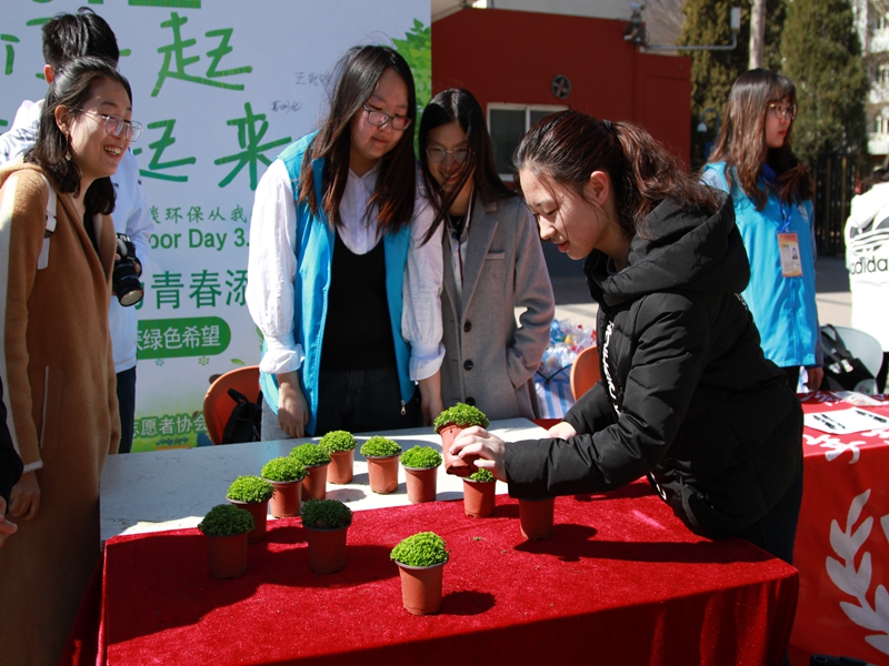 在第41个植树节来临之际,为了进一步倡导绿色环保理念,让低碳环保真正地走进同学们的生活中,3月12日中午,学校团委组织了“播种绿色意识,收获绿色希望”植树节宣传活动。此次活动以废旧空瓶兑换绿植的形式开展,倡导绿色生态理念。