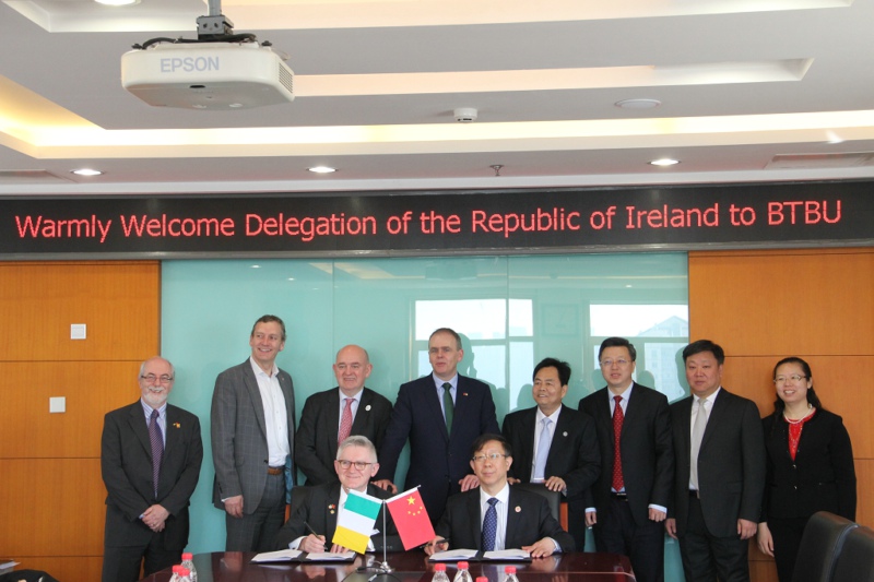 3月17日,爱尔兰教育与技能部部长乔·麦克休(Joseph McHugh)在爱尔兰驻华大使李修文(Eoin O’Leary)和爱尔兰考克大学校长谢百成(Prof.Patrick O’Shea)的陪同下率团访问我校,并出席在我校举行的“北工商爱尔兰日”活动。孙宝国校长在阜成路校区会见了代表团一行。会谈由贾英民副校长主持。