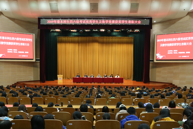 4月3日晚,学校2019年春本科生四六级考试优秀学生及数学竞赛获奖学生表彰大会在良乡校区召开。校长孙宝国、党委副书记张德玉、副校长谢志华出席活动。800余名师生代表参加了表彰会,活动由副校长谢志华主持。