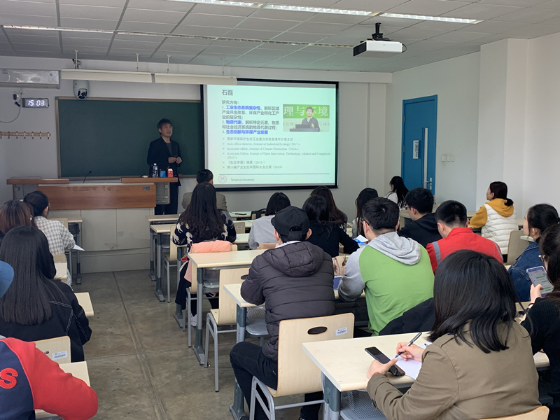 石磊副教授就职于清华大学环境学院,担任国家环境保护生态工业重点实验室清华分室主任、中国生态学会产业生态专业委员会主任、《Journal of Industrial Ecology》亚洲办公室主任、《Journal of Cleaner Production》副主编以及第10届国际产业生态学大会主席(2019),主持生态工业园区、循环经济和水专项等四十余项课题。讲座中,石磊副教授首先介绍了工业生态学的学科概念及其发展概貌,详细论述了工业生态系统的复杂性,并结合丹麦、韩国以及中国宜兴市工业产品演化路径,生动细致的讲解了工业生态系统复杂性的研究方法以及工业生态学在复杂工业生态系统中的成功应用。最后,提出了中国工业生态化的迫切需求以及相关政策的启示启发。