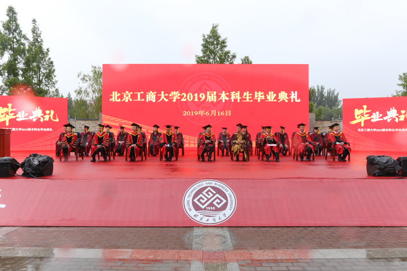 桃李芳菲,硕果累累。6月16日上午,学校2019届本科生毕业典礼在良乡校区求知广场隆重举行。学校领导黄先开、孙宝国、张德玉、谢志华、张耘、郑文红、贾英民、方德英、董竹娟与2019届毕业生一同参加了难忘的雨中毕业典礼。典礼由学校党委副书记张德玉主持。校学位委员会成员、各学院领导、系主任、毕业班辅导员、班主任及部分家长代表参加毕业典礼。