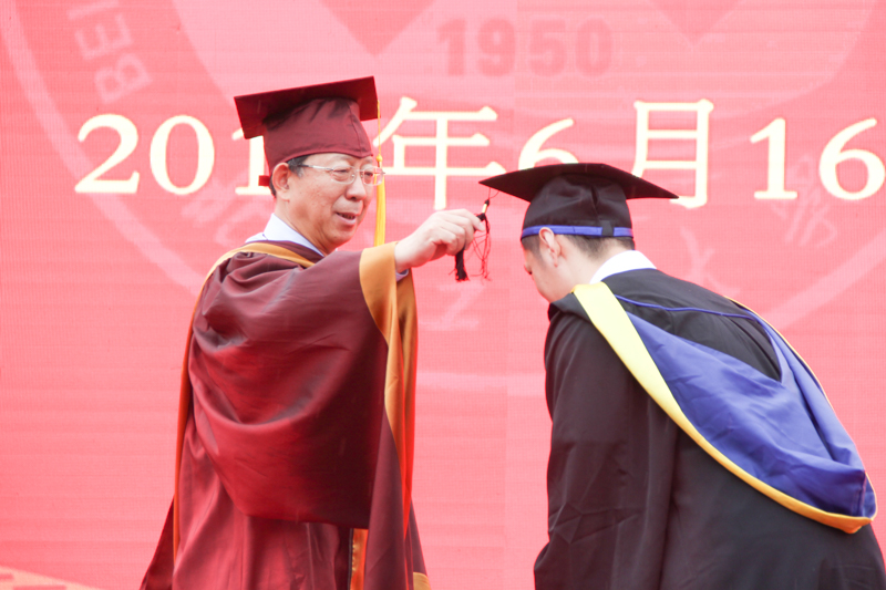 校长孙宝国院士在讲话中代表学校向2019届本科毕业生表示最热烈的祝贺。孙校长谈到,2019届学生是学校进一步深化本科教学综合改革的第一届,四年间学校出台了一系列措施帮助同学们成长成才:配备了副教授以上职称的优秀教师担任班主任,实施了英语分十级教学,实行了“千人大考”,开展了“五早一晚”晨读晨练活动。经过师生四年的努力,2019届本科毕业生深造率达到30.19%,首次实现了学校本科人才培养“369”指标中“3”的突破。2019届毕业生中共有24人次获得国家奖学金、24人被评为“色情片市三好学生”、133人被评为“色情片市优秀毕业生”、131人次获得“校园之星”荣誉称号;764人次在市级、国家级、国际级的竞赛中获奖,其中有62项一等奖。四年中,同学们积极参与大学生社会实践活动,热心公益,勇于担当社会责任,志愿服务时长28万多小时,获得了48项市级以上荣誉。四年中,同学们通过参加 “五早一晚”、“阳光长跑”、体育文化节、各类体育联赛和运动会活动,坚持体育锻炼,有69个团体289人次在市级以上体育文艺竞赛中获奖,其中在首都高等学校第十届秋季田径运动会上还打破了4x100女子组的记录。孙校长指出,一分耕耘一分收获,学校近年来人才培养质量的不断提升是全校师生共同奋斗的结果,其中我校位列中国教育在线公布的2018年中国大学生毕业薪酬水平排行榜57位,在武书连2019中国大学生新生质量与毕业生质量对照排行榜中,通过4年培养,我校毕业生全国排名提升了8位。孙校长谈到,为了表达对同学们的祝贺与祝福,学校决定将首次专门设计制作的学位服送给毕业生们作为纪念。