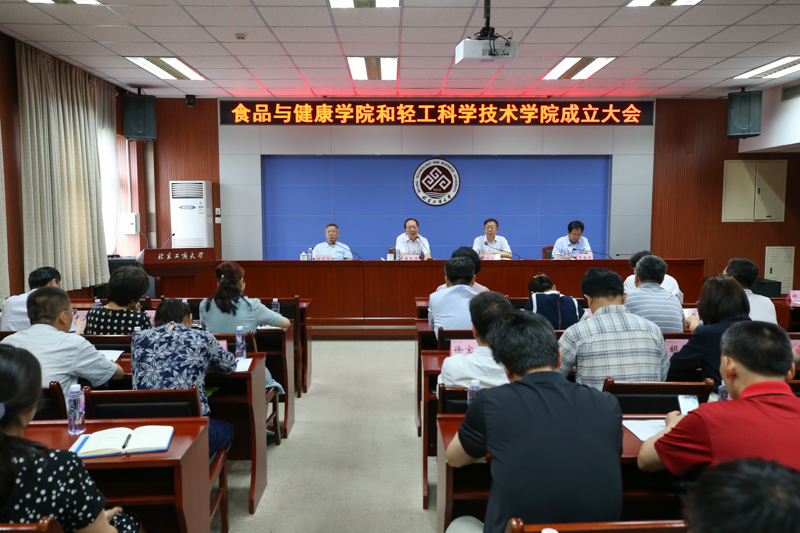 7月9日上午,我校食品与健康学院、轻工科学技术学院、数学与统计学院成立大会在阜成路校区隆重举行。学校领导黄先开、孙宝国、张德玉、谢志华、张耘、郑文红、贾英民出席大会。学校有关党政职能部门负责人,相关学院全体教职工参加大会。成立大会由谢志华副校长主持。