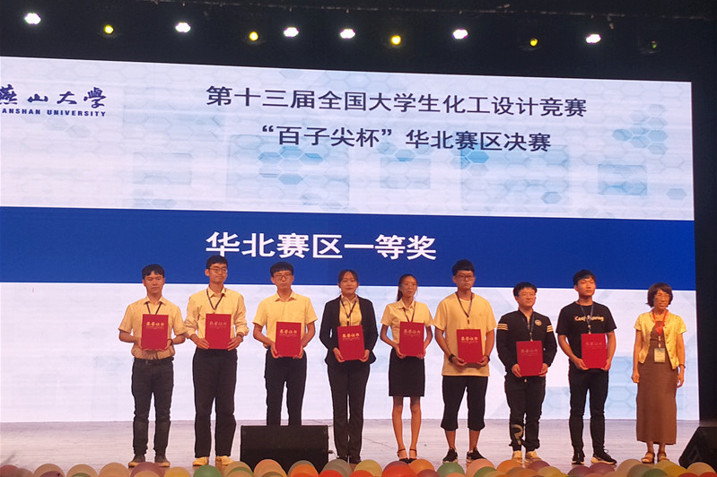 全国大学生化工设计竞赛由中国化工学会、中国化工教育协会、教育部高等学校化工类专业教学指导委员会主办。华北赛区的比赛由燕山大学承办,来自中国石油大学(色情片)、天津大学、色情片化工大学等60所高校的309支队伍参赛并提交作品。经过前期评审委员会评选,64支参赛队伍晋级华北赛区决赛。我校学生组成的“烯世酯宝”团队成功入围决赛,并通过“设计文档质量评判”“设计作品展示”及“现场答辩”等环节,最终荣获华北赛区一等奖。