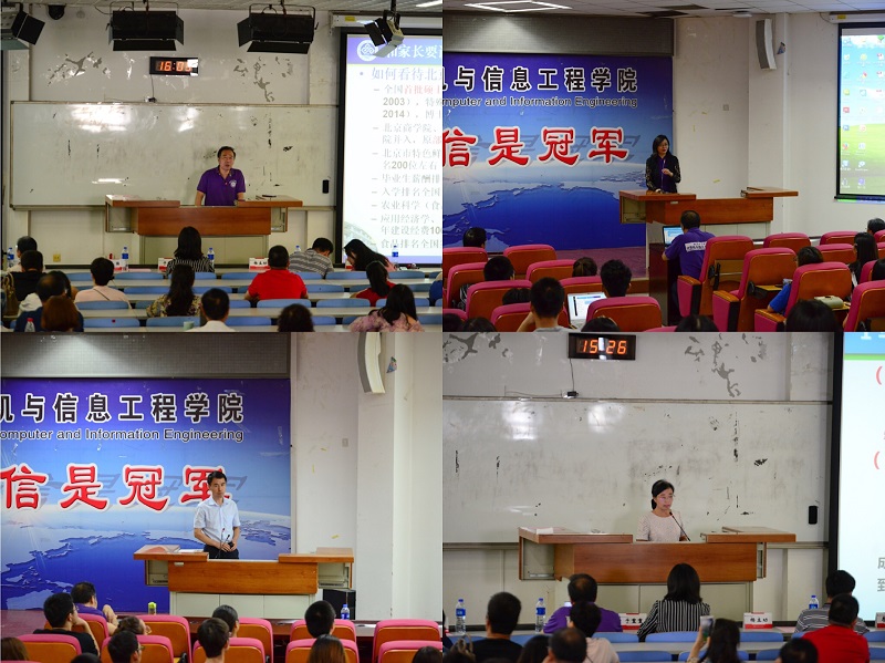 31日下午15时许,学院领导、各班班主任以及辅导员老师参加了新生家长会,本次家长会由曹璐婷老师主持。院长于重重教授为各位家长介绍学院和各专业具体情况,向家长们展示了学院现状、师资队伍、本科教学状况、学科竞赛以及2019级新生录取情况等内容。副院长廉小亲教授就教学管理、学业等方面进行说明,介绍了本科生培养条例、毕业要求与学业要求、保研考研以及出国条件等方面的具体内容。党委副书记杨立功老师从学生工作队伍、学生管理工作、大学生活可能遇到的困境以及违纪处分管理规定等方面进行了详细讲解。学院党委书记蔡强教授发表总结讲话,他先是对我校在各方面的排名进行了展示,然后介绍了本科生以及研究生毕业后的就业情况,强调了教学教育培养的重要性,建议家长督促学生发展个人特长、不放纵自己、不沉迷游戏,饱含对新一届学生全面发展的期望。