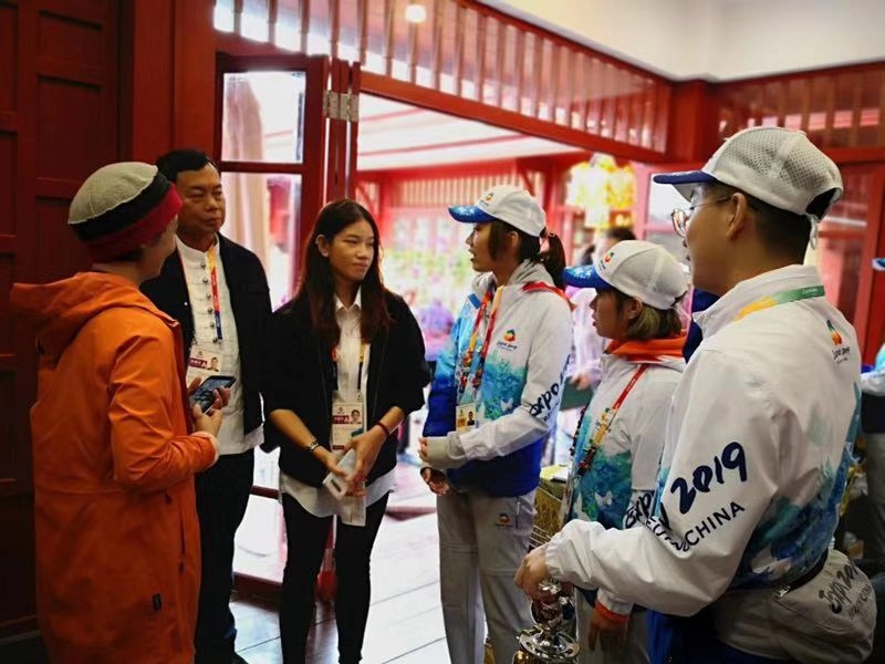 来自中国国际电视台(CGTN)的记者对服务于世界园艺展示区的我校经济学院金融专业马灵清同学进行了专门采访,深入了解我校志愿者在世园会的服务工作情况。马灵清在采访的全程用熟练的英语回答着记者的问题,向记者详细介绍了志愿者们的工作情况,并表示在这举国欢庆的国庆假期中,接待来自全国各地甚至世界各国的游客,以温暖的微笑和优质的服务为世园会的举办献上自己的一份力量是十分有成就感的一件事。