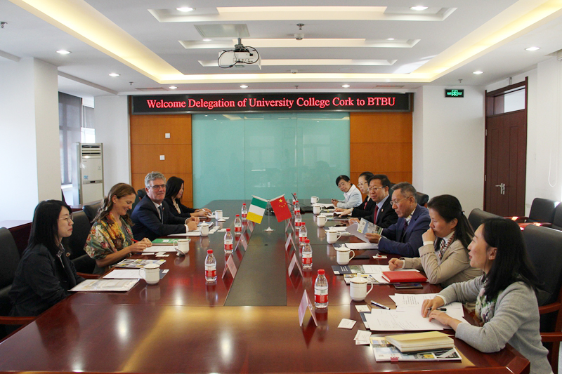 10月21日上午,爱尔兰国立考克大学常务副校长约翰·哈罗兰(John O'Halloran)一行四人访问我校。孙宝国校长在阜成路校区会见了代表团一行,会谈由谢志华副校长主持。