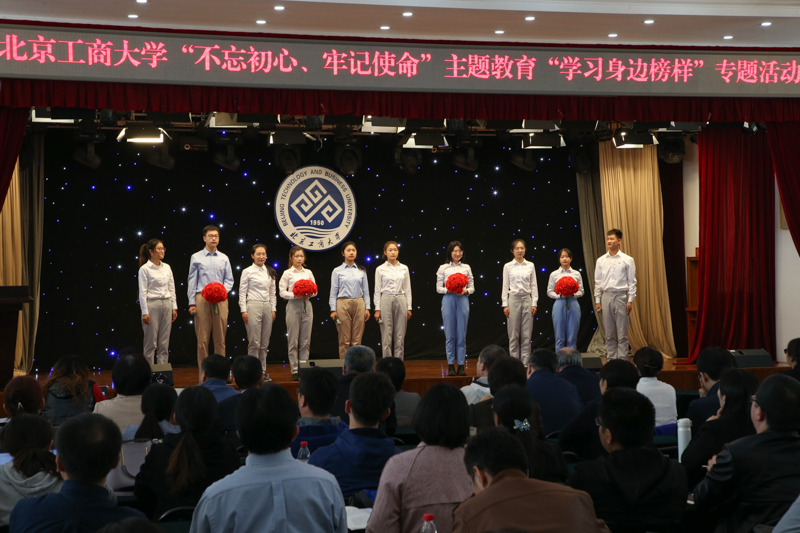 10月18日下午,学校召开“不忘初心、牢记使命”主题教育“学习身边榜样”专题活动,会上对2017-2019年学校12个先进党组织、60名优秀共产党员、20名优秀党务工作者和2018年18个最佳党日活动、14个基层党建创新典型案例进行了表彰。各类先进组织和优秀个人代表上台接受了颁奖表彰。三位优秀党支部书记代表进行了经验分享,介绍了履行党建工作主体责任、强化党的创新理论武装、推动党建创新、立足岗位助力学校发展的典型事迹;四名获奖教工党员代表以《初心·使命》的主题,用诗歌朗诵的形式表达了对党和祖国的热情讴歌,分享了对初心使命的领悟和感受,展现了对学校事业的忠诚和挚爱;经济学院党委青马小剧场表演了党建工作小话剧,以生动鲜活的形式讲述了学生党员积极训练完成国庆任务的感人故事。会前,全体与会人员还观看了不忘初心视频。