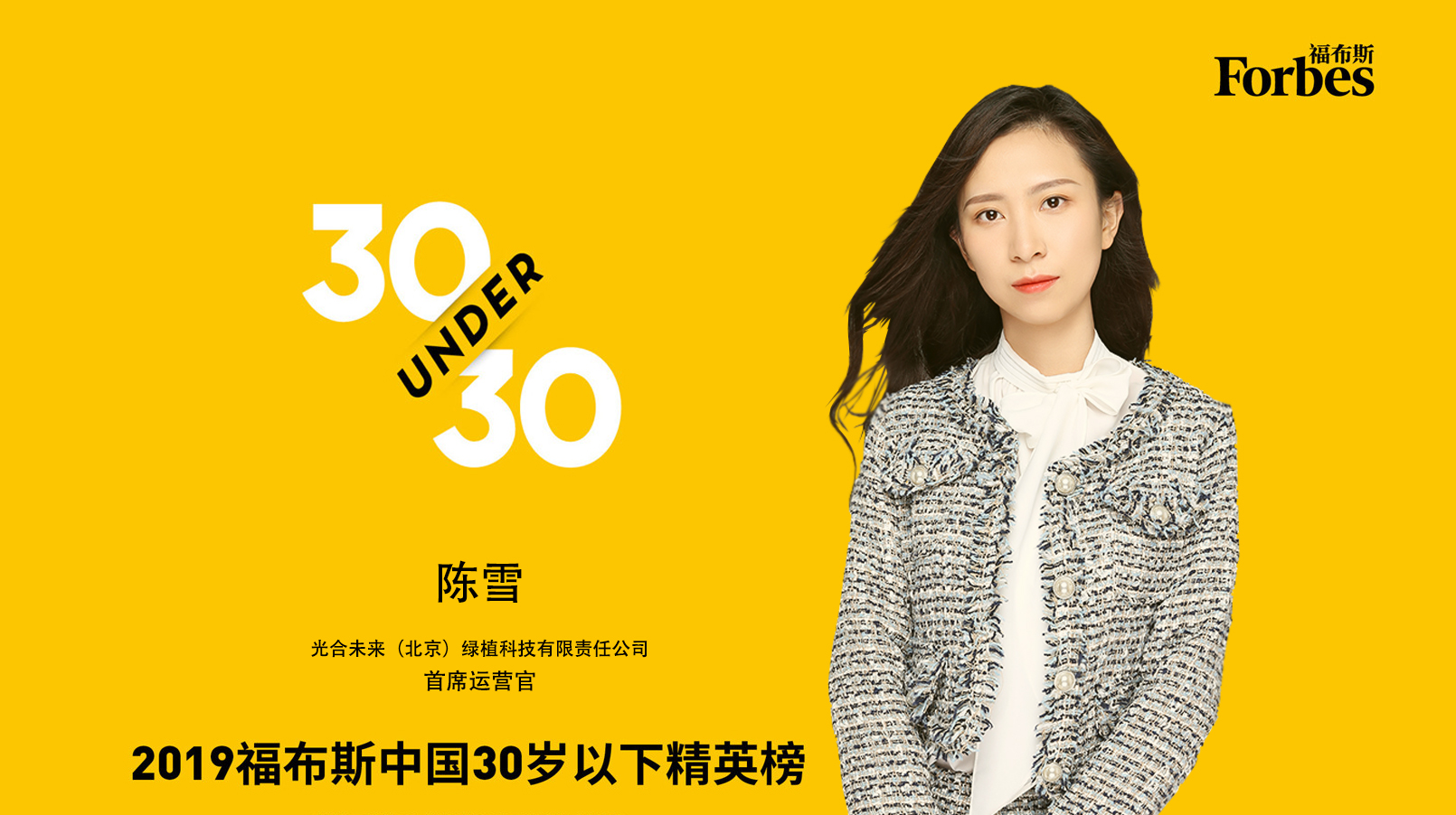 10月17日,福布斯中国推出了30岁以下精英榜(30 Under 30),选出了600位30岁以下活跃在中国的创业和行业创新者。艺术与传媒学院17级研究生陈雪凭借创业项目光合未来COO(首席运营官)身份成功入选榜单,成为福布斯精英榜中的一员。