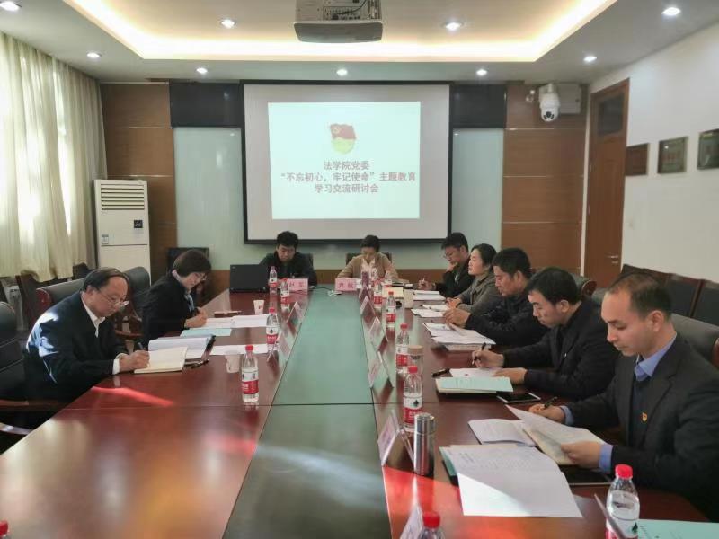 法学院党委按照学校党委的统一部署,扎实推进“不忘初心、牢记使命”主题教育活动,取得了阶段性成效。本次是法学院党委召开的第四次专题研讨交流会,本次研讨安排三个研讨专题,第一专题为“党性修养”、“担当作为”专题;第二专题为《习近平总书记在庆祝国庆70周年大会上的重要讲话》《习近平总书记在国家勋章和国家荣誉称号颁授仪式上的重要讲话》、国庆服务保障工作;第三专题为习近平新时代中国特色社会主义法治思想论述、十九届四中全会精神。