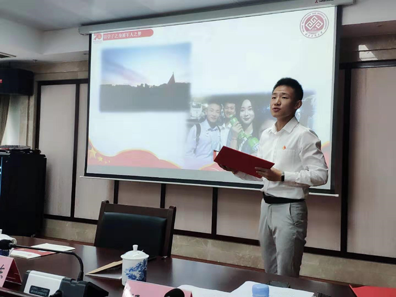 我校经济学院退伍大学生士兵,金融172班王巡东同学,结合自己携笔从戎的经历,从担任国庆方阵中队长的角度,介绍了北工商老兵的责任和担当,通过铿锵有力的宣讲,把训练中如何克服“体能关”“蚊虫关”“等待关”讲生动、讲明白,凸显了北工商学子心向党,青春无悔献祖国的爱国情怀。商学院辅导员李雨晴,从带队辅导员的角度,介绍了辅导员群体在国庆任务中身在一线,敢于担当、甘于奉献的感人事迹。她以自己和祖辈、父辈,三代人与国庆游行的故事作为切入点,结合我校一线带队老师的诸多感人事迹,把通过国家重大活动进行思政教育的感悟娓娓道来,诠释了“立德树人”的生动内涵,表明了辅导员与青春作伴携手前行的决心。来自学工部的杨帅,从服务保障的角度,对那些为国庆默默奉献,却不能亲自走上长安街的人物、事迹进行了介绍,阐述了作为共产党员克服困难,牢记“四个意识”要求的所思所想、所作所为,着重说明了我校党员师生上下一心、全力以赴保障国庆任务的事迹,表达了代表全国九千万党员接受祖国和人民检阅的豪迈情怀。外国语学院英语162班侯雅婷,作为参训队员代表,讲述了参与国庆任务的心路历程,把北工商学子在国庆任务中主动将小我融入大我,自觉服从组织安排,以国家利益为重的良好精神风貌进行了详细阐释,就“青春为什么是红色”这个问题进行了精彩回答。