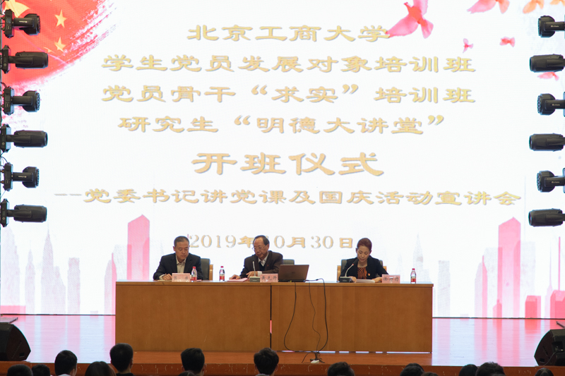 10月30日下午,学生党员发展对象培训班、研究生“明德大讲堂”开班仪式在良乡校区举行,校党委书记黄先开教授出席开班仪式。研究生工作部部长徐丹丹和学生处处长吕良先后主持,研工部、学生处、党委宣传部、团委有关部门以及各学院辅导员老师、秋季发展对象培训班学员、党员骨干“求实”培训班、研究生明德大讲堂学员共计860人参加了开班仪式。