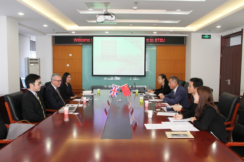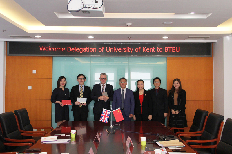 11月11日上午,英国肯特大学国际化事务主任安东尼·曼尼(Anthony Manning)一行三人访问我校。谢志华副校长在阜成路校区会见了代表团一行。