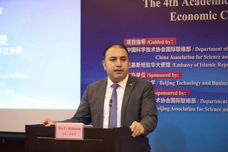 巴基斯坦驻华大使馆科技参赞阿塔·拉赫曼在致辞中高度评价了我校巴基斯坦科技与经济研究中心在促进中巴两国科技与经济合作中的重要作用。他指出,随着中巴经济走廊建设的不断发展,中巴两国在科技与经济领域的合作不断加深,取得了重要的合作成果。他期待未来中巴两国能进一步在教育、科技、经济等领域开展全方位合作,促进两国的共同发展,他还特别期待我校巴基斯坦研究中心的年会将来能考虑在巴基斯坦召开。